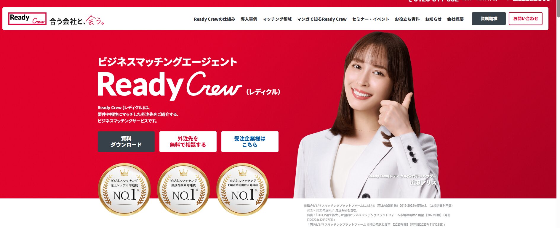 2009年のサービス開始より7000社を超える企業を支援しているマッチングサービスです。